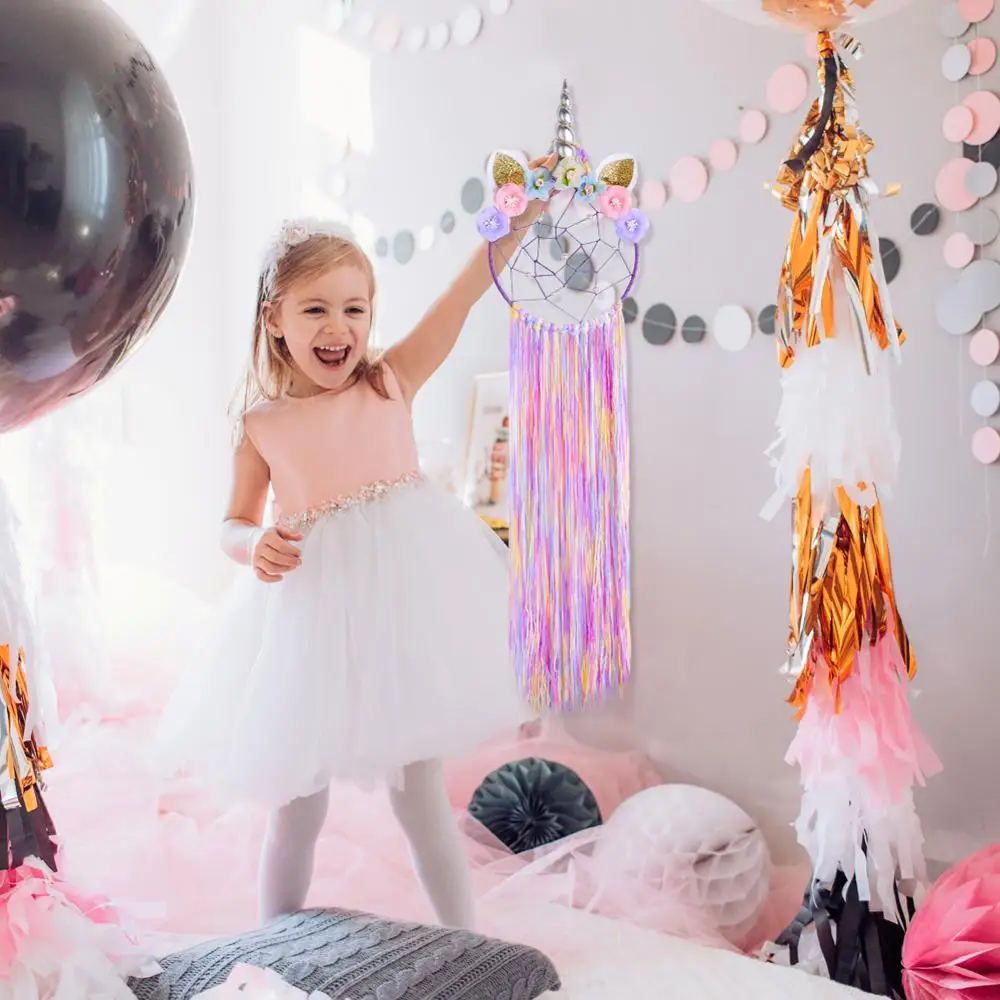 Rainbow Unicorn Dream Catcher Home Decor Handmade Wind Chimes Tassel Pendant Wall Hanging Ornaments