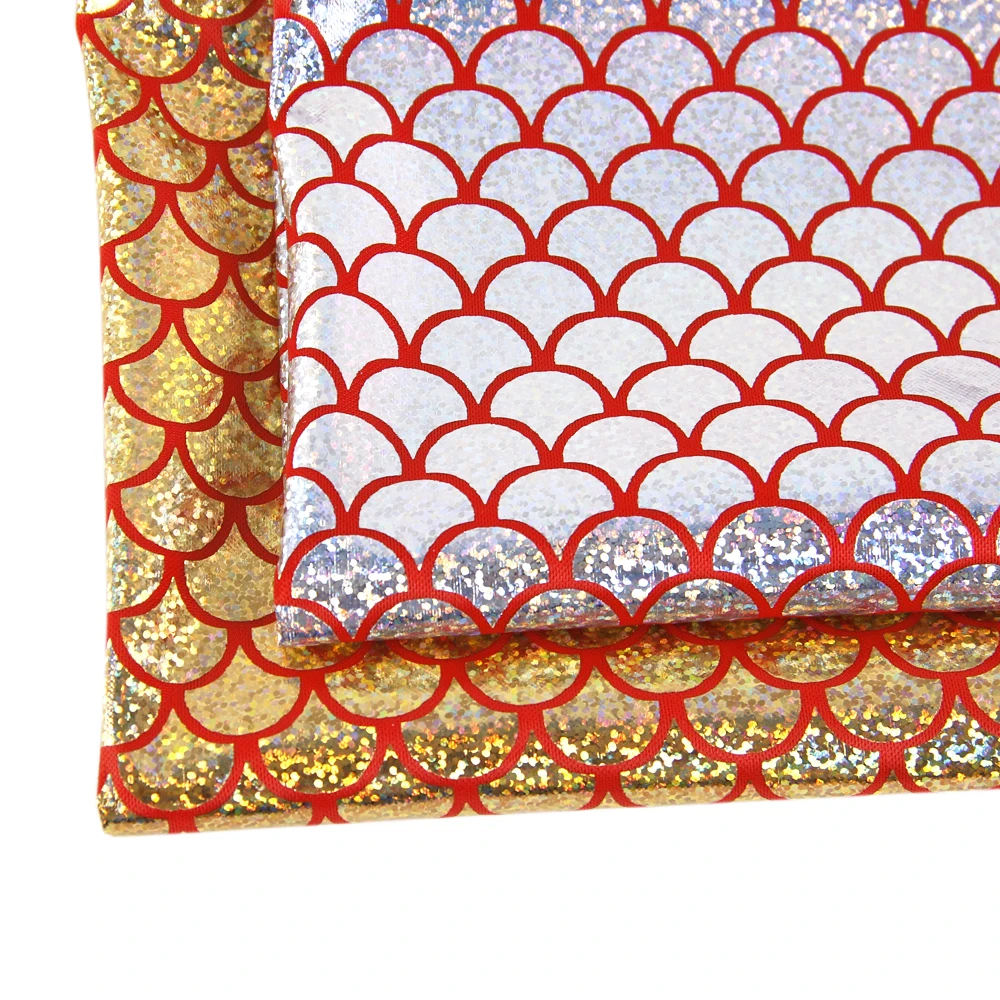 David accessories 50*145cm Mermaid Fish Scales Polyester Cotton Fabric Sewing DIY Handmade Home Textile Cloth For Dress,c2516