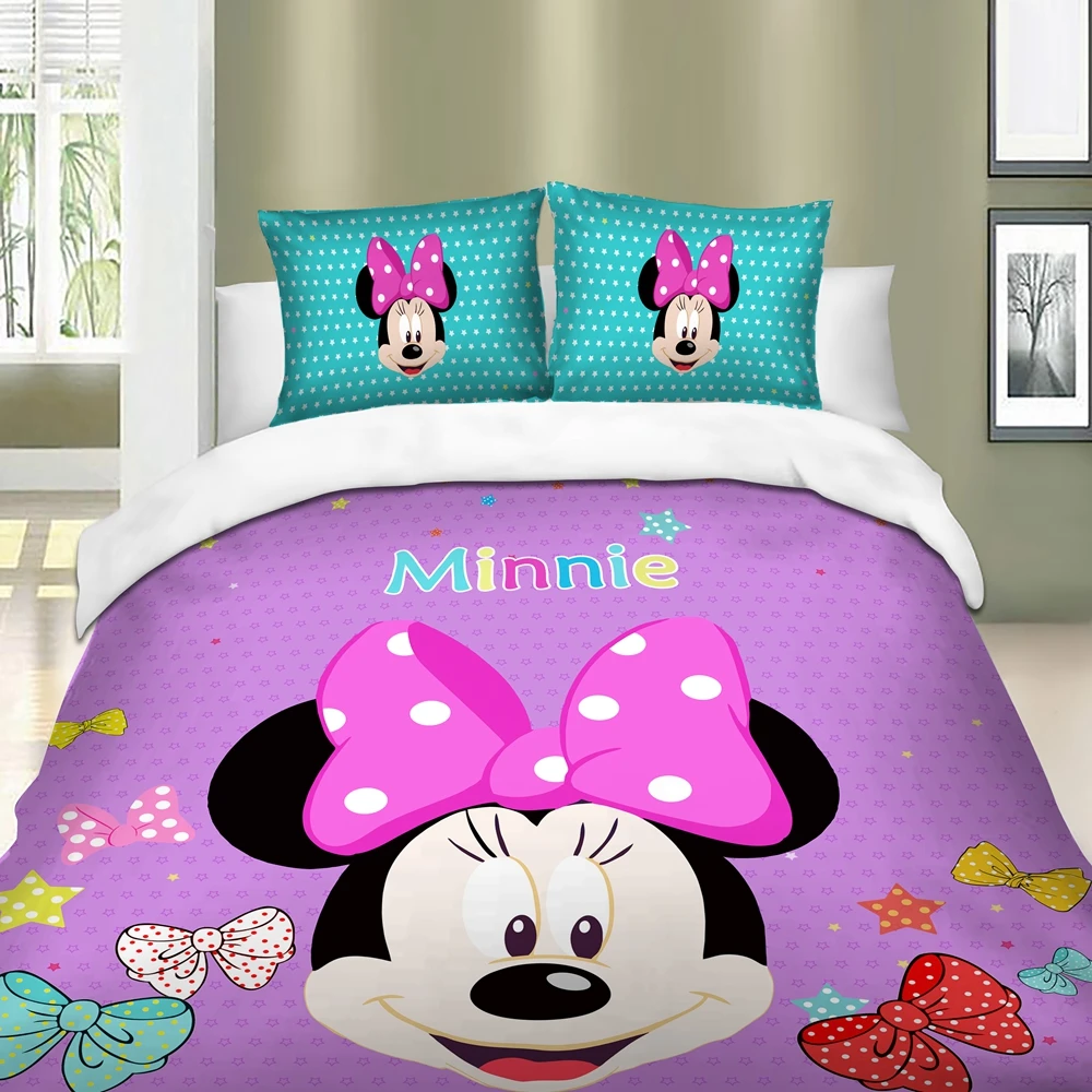 Disney Minnie Mouse Bedding set Cartoon Minnie Duvet Cover Pillowcases Twin Full Queen King Size Ki
