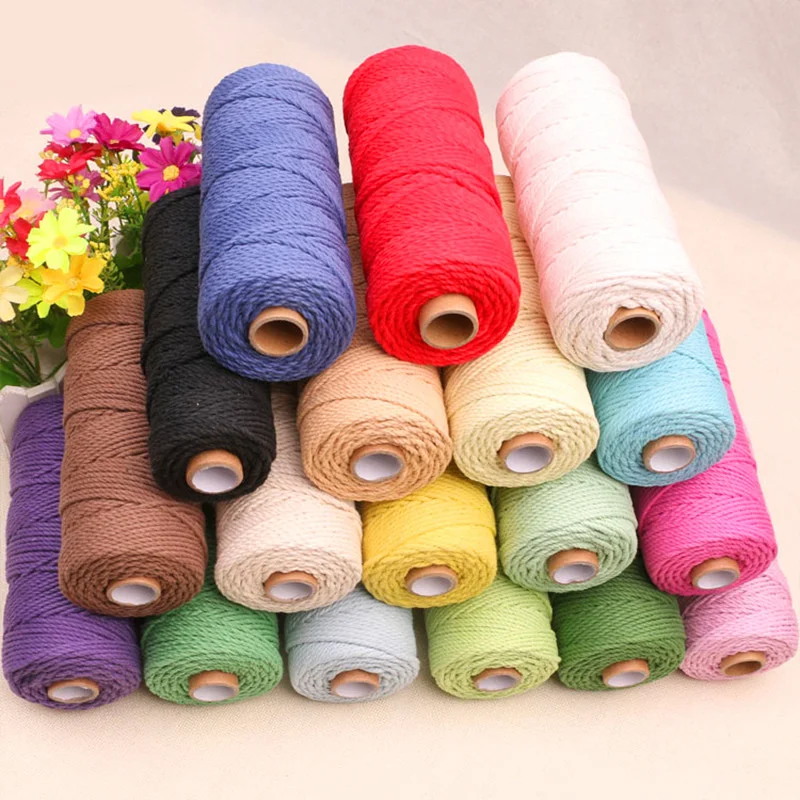3mm 100% Cotton Cord Colorful Cord Rope Beige Twisted Craft Macrame String DIY Home Textile Wedding Decorative supply 110yards