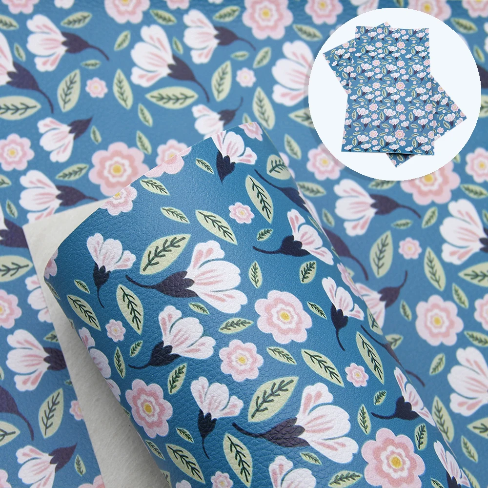 New 20*34cm Litchi Flower Fruit Bus Printed Artificial Synthetic Leather For Hair Bow DIY Projects Handbag Shoes,1Yc6789