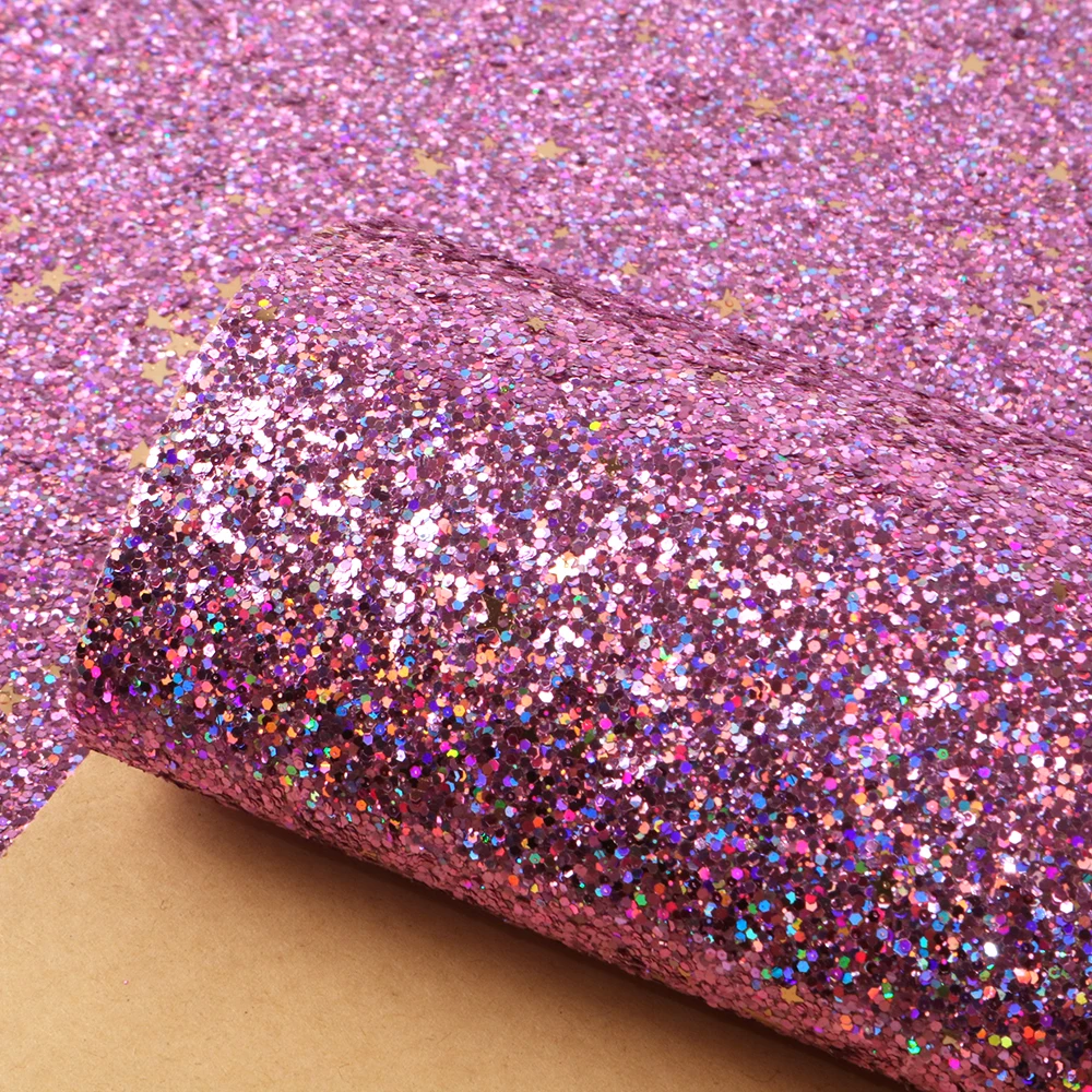 David accessories 20*34cm Pink Chunky Glitter Sequins Synthetic Leather DIY Bow Bag Shoes Materials Faux Leather Fabric ,1Yc8039