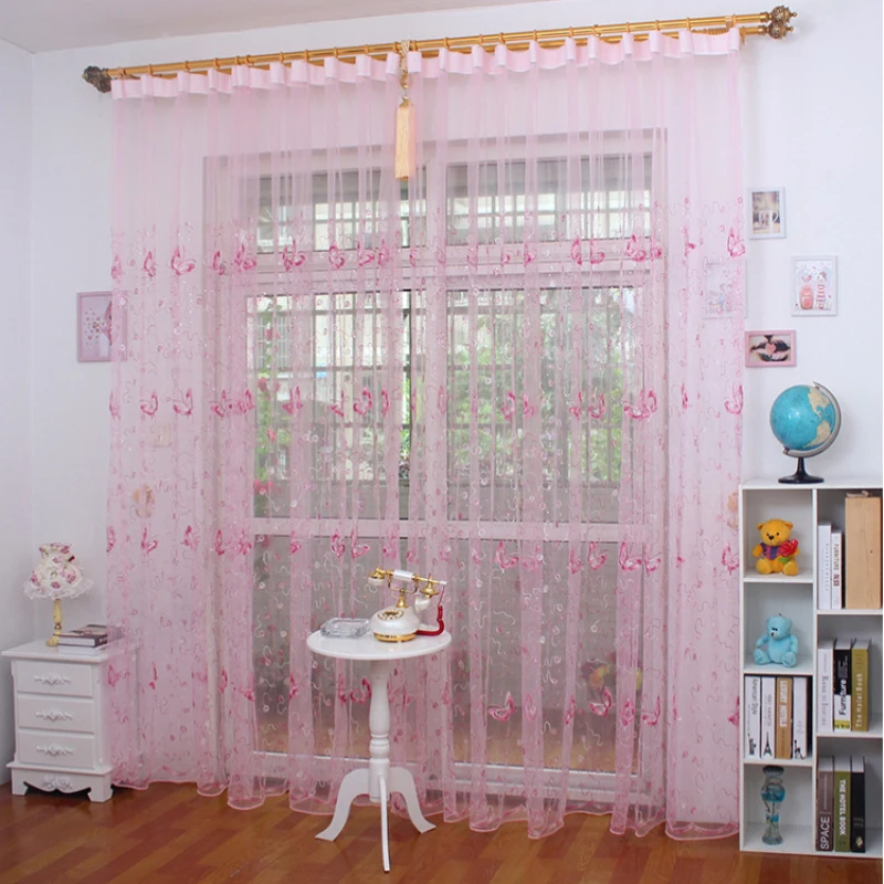 Cheap Price for French Romantic Shining Butterfly Embroidered Voile Curtain Panel Window Home Textile Bedroom Curta