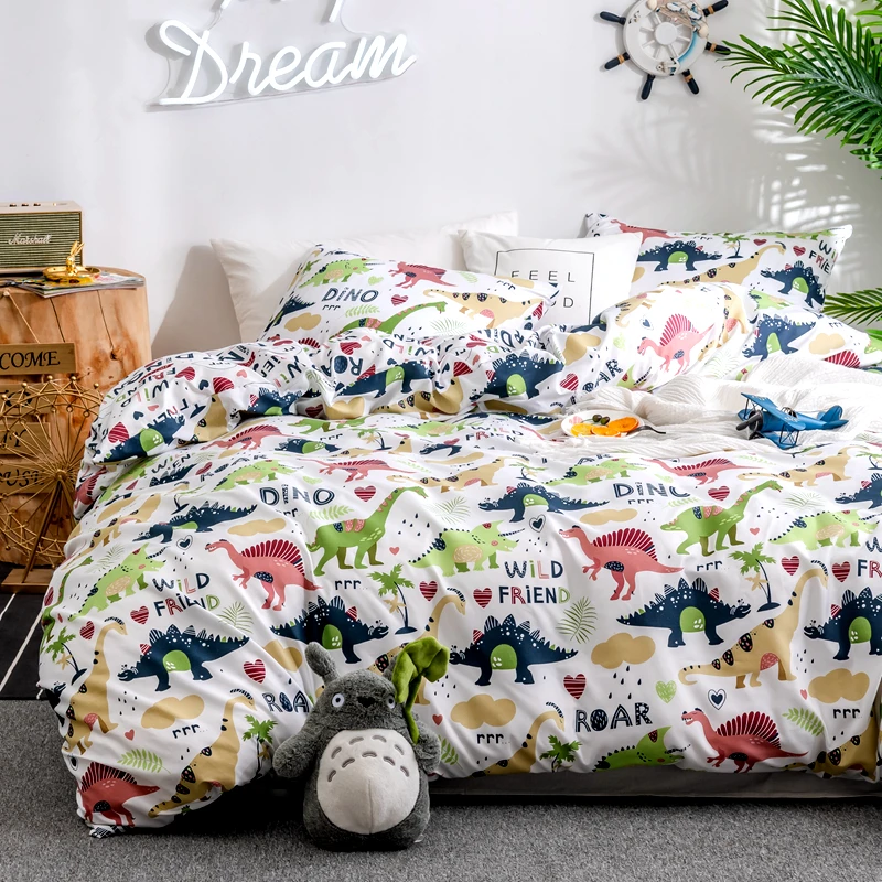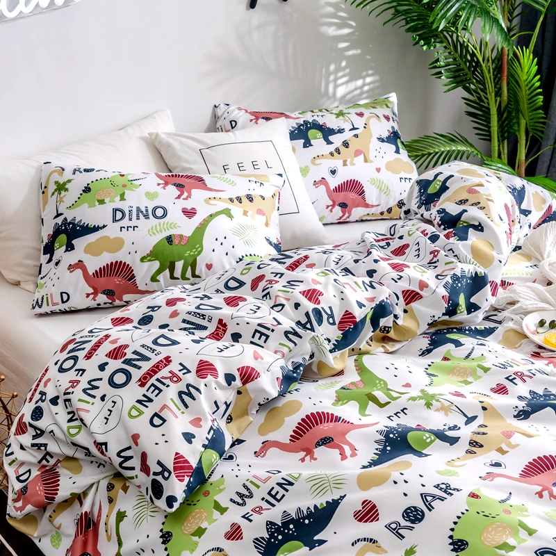 Cartoon Kids Bedding Set Crib Twin Baby Children Duvet Cover Set 2/4PCS Bed Linen Set Dinosaur No F